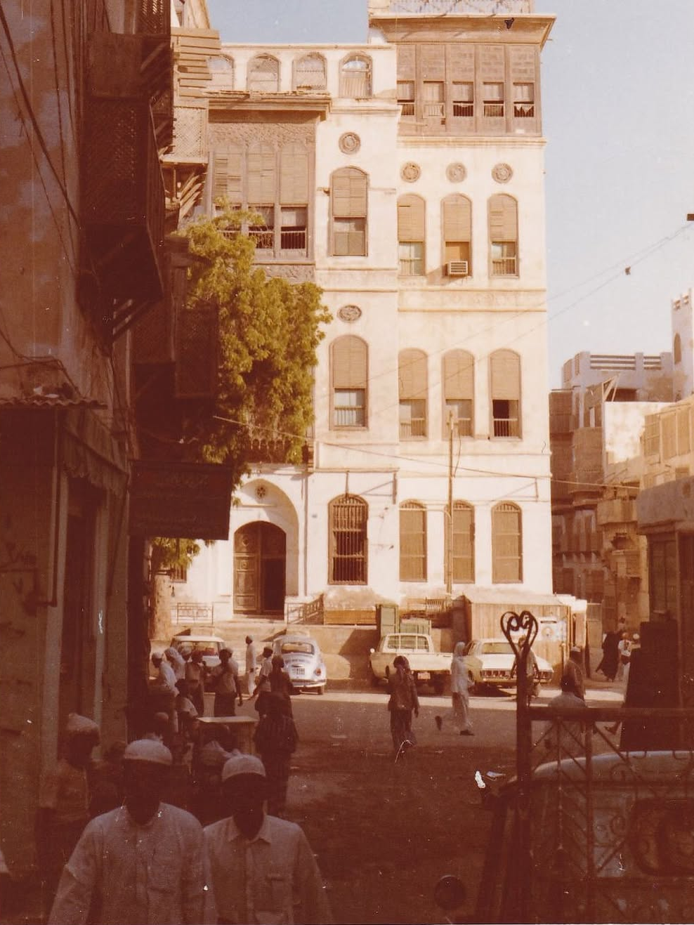 Just outside, in the small northern square, stands a neem tree that became famous in its own right. For decades, locals knew it as “the only tree” in old Jeddah, and Nassif House gained a popular nickname: Beit al-Shajarah, i.e. the House of the Tree.