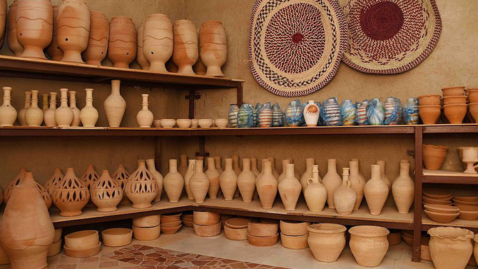 Palm-frond crafts tied to oasis agriculture; boat-related carpentry and ropework; pearl‑linked jewelry heritage.