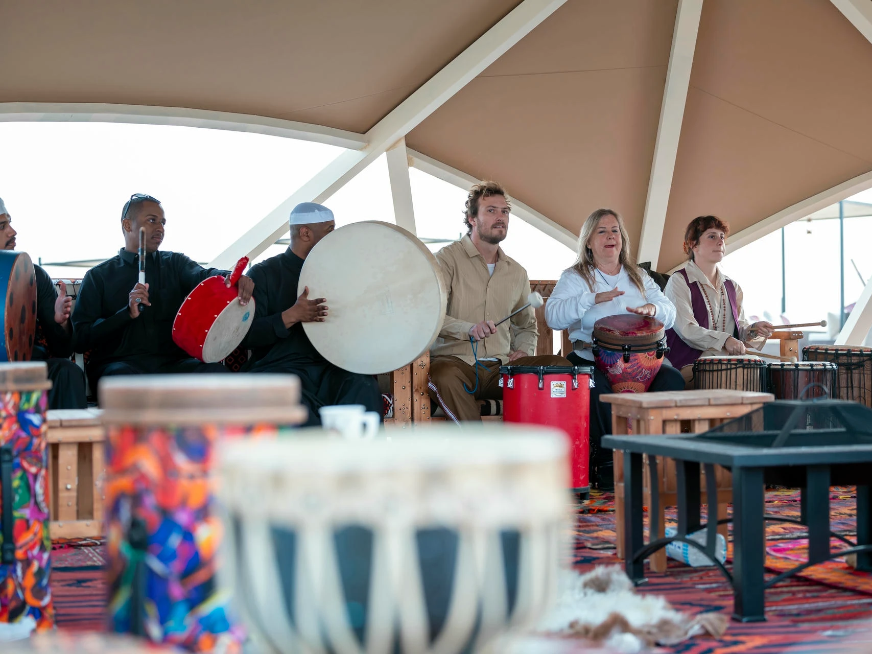 Sada Al‑Wadi activates open spaces with Saudi folk performance. Audiences encounter Samri rhythms, antiphonal poetry, and regional musical traditions that have animated Najdi gatherings for generations. The program underlines how oral forms preserve collective memory, especially when performed in the very wadis that shaped their sound.