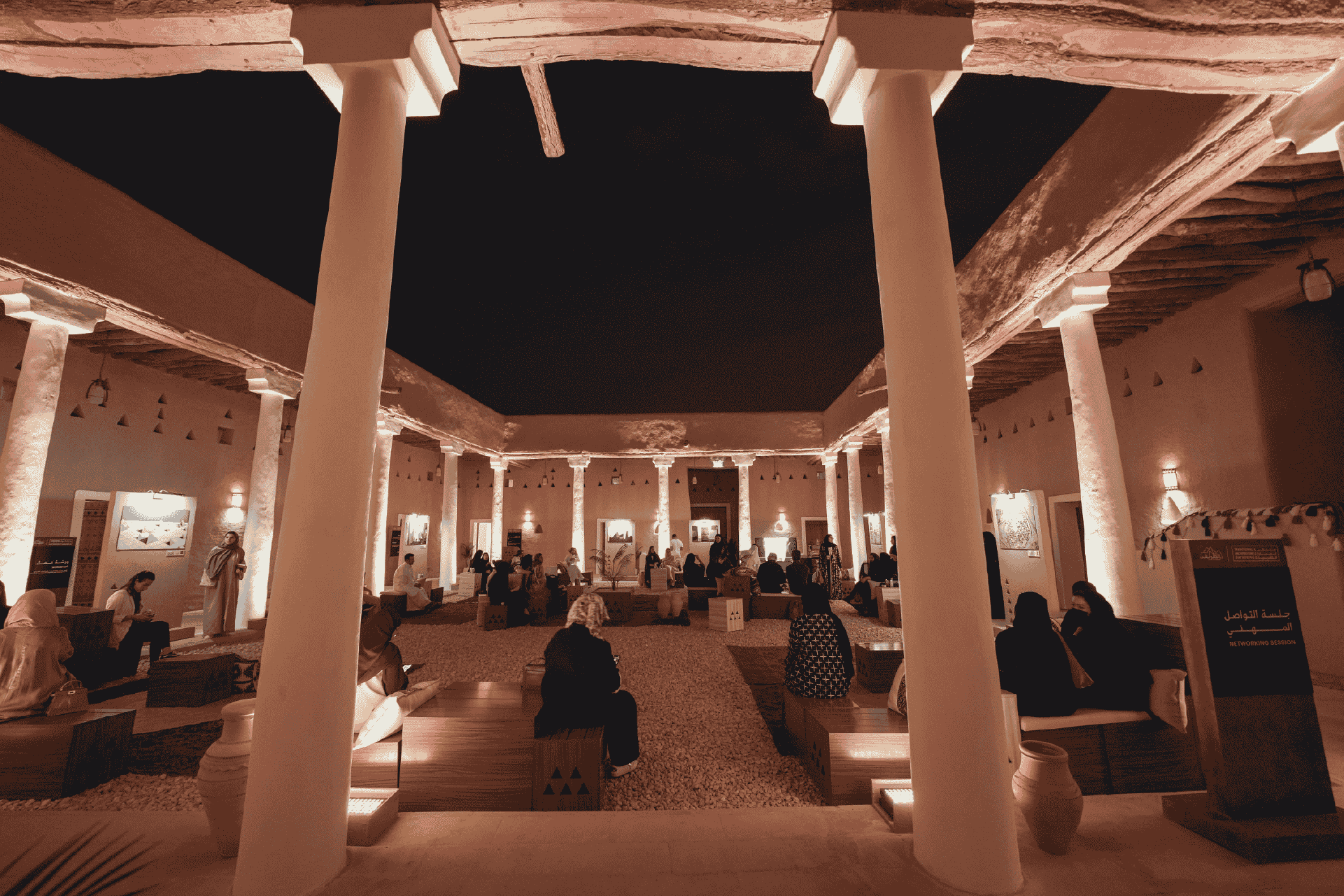 The Zallal district hosts rotating exhibitions, design pop‑ups, and installations that connect contemporary Saudi creativity to Diriyah’s historic narrative. The contrast is intentional: adobe silhouettes on the horizon, new ideas at street level.