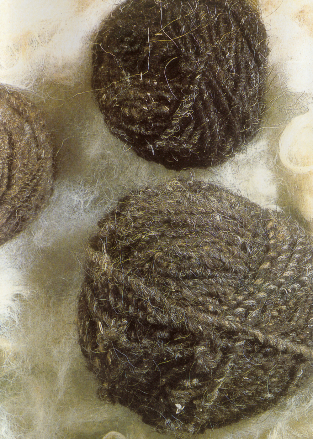 The fibres were placed on this spindle and spun into yarn, then wound into balls. - Dyeing came next.