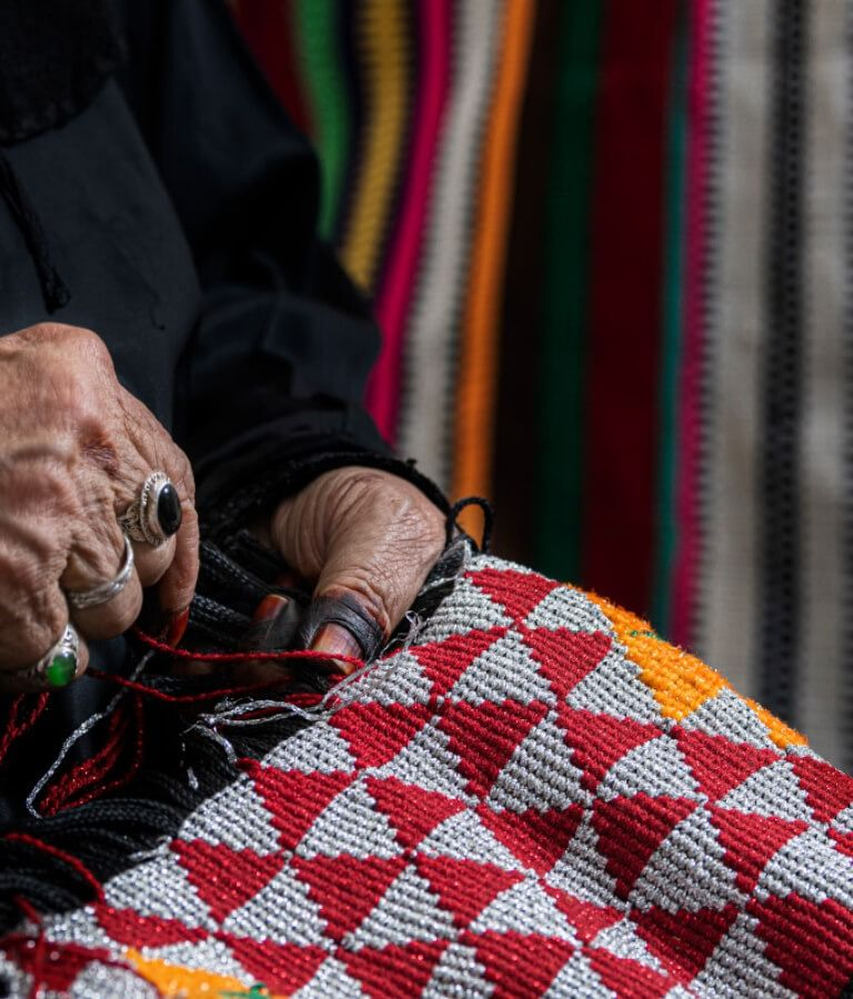 Over time, Al sadu became more than a domestic craft. It became a record of Bedouin life itself. The weaving reflected movement across open land, adaptation to climate, and the values of a society built on resilience, hospitality, and cooperation. Today, that history still lives in every band of color and every repeated geometric form.