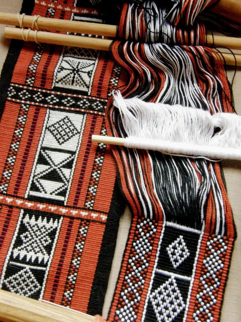Yarn was laid vertically, while horizontal threads were passed through to form the textile. - Patterns were shaped through different thread choices and arrangements.