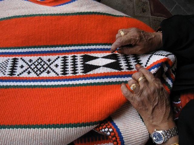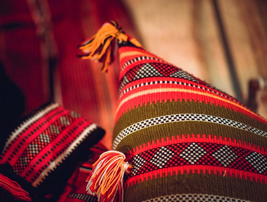 Desert herbs and plants gave the wool its colour, while synthetic dyes are more common today. - The weaving itself was built through vertical and horizontal threads.