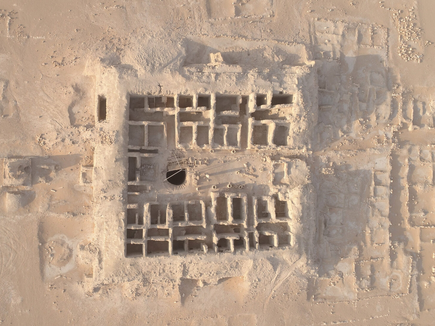 Remains of a palace, a well, and a residential area at Qaryat al-Faw, showing how incense trade supported urban development along the route.