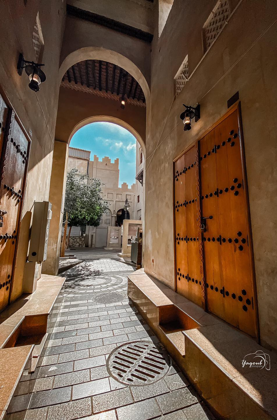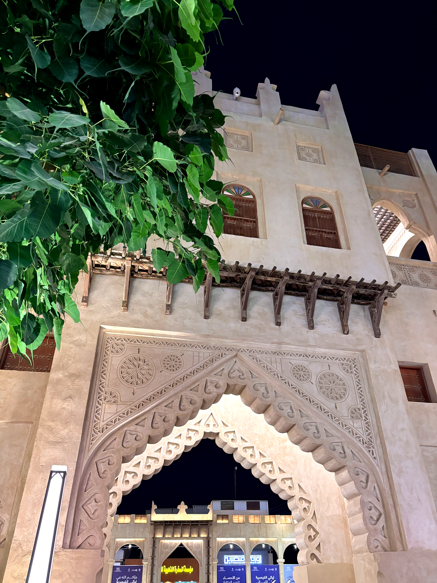 Much of Qaisariya’s beauty comes from wood. Its doors, windows, and shop details carry a warmth that softens the market’s density and gives it a handmade character. Wood has long held an important place in the traditional building language of Al Ahsa, especially in doors, gates, and openings. Against pale walls, it creates contrast, depth, and texture.