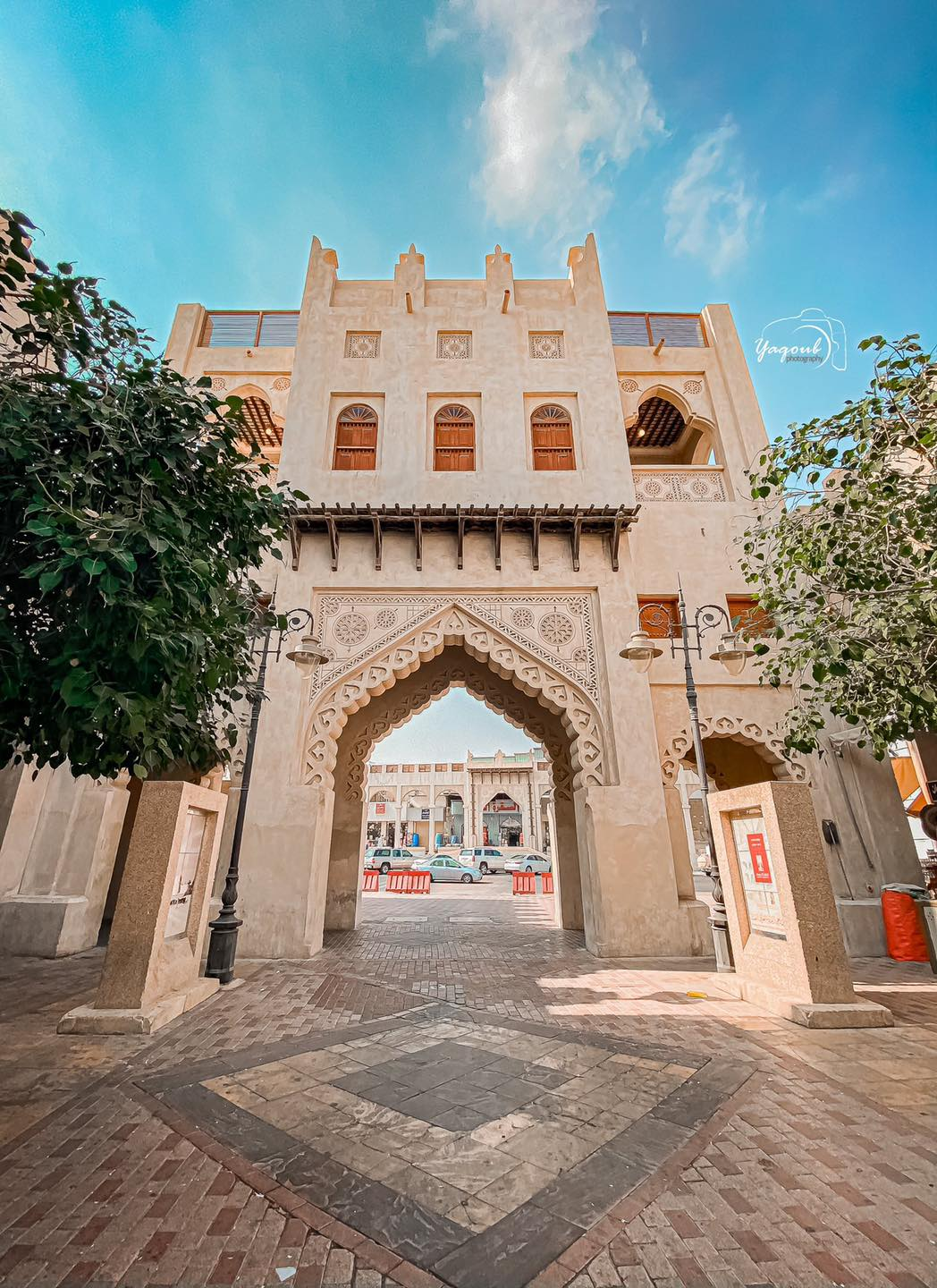The white entrance of Qaisariya gives the market a calm but ceremonial threshold. Its pale surface reflects the traditional architecture of the region, where earth-built structures were often coated with white lime plaster. This finish was not only aesthetic. It helped protect the buildings from weather, improved resistance to rain, and reflected harsh sunlight in the hot climate. The bright façade seen today also reflects restoration efforts that preserved the souq’s historic character and visual identity.