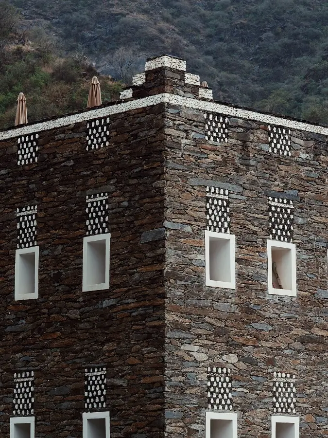 Every detail in Rijal Alma’s architecture has a function and a story. The thick stone walls protect against harsh mountain winds. The wooden rawasheen (window screens) allow airflow and privacy. The multi-floor towers were designed not just for living but for security, with higher levels used to store food, host guests, or defend the home.