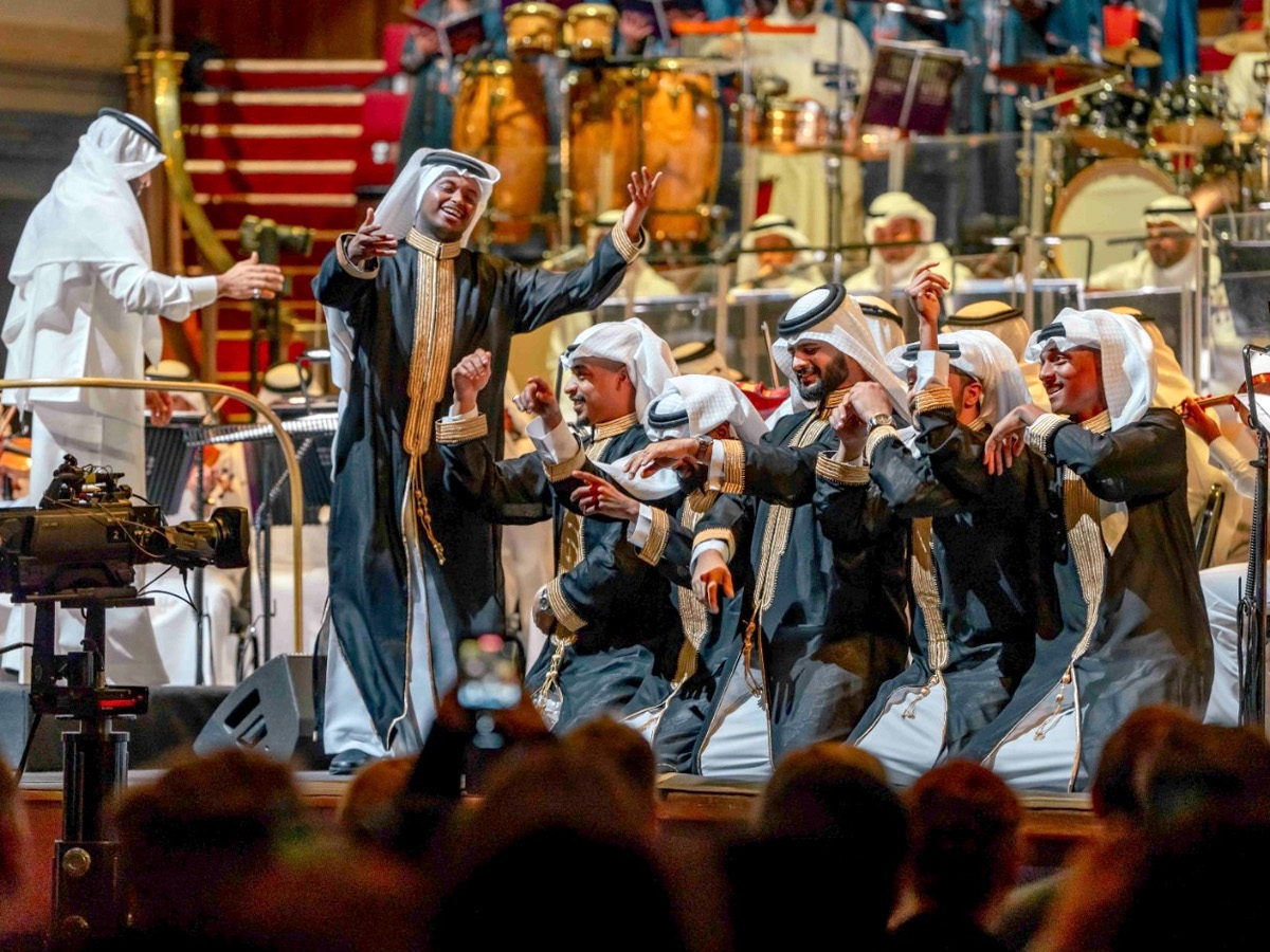 In many of its flagship concerts, the Saudi National Orchestra and Choir does something unique: it places folk dance troupes and traditional instruments on the same stage as orchestral arrangements, turning the show into a live map of Saudi Arabia’s regions.